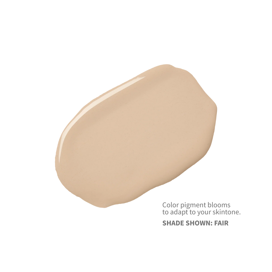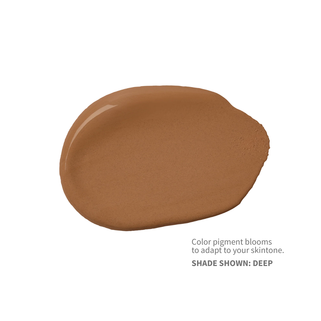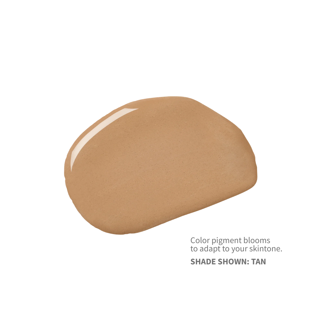+ Flecks of encapsulated pigments adjust to skin's natural tone